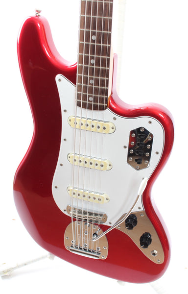 2012 Fender Bass VI, candy apple red. Made in Japan, serial number JD12019551. This bass is 100% original and comes with its original warranty leaflet with matching serial number. It's in excellent condition. Rare color, lovely matching headstock. Weighs 4.35kg.
