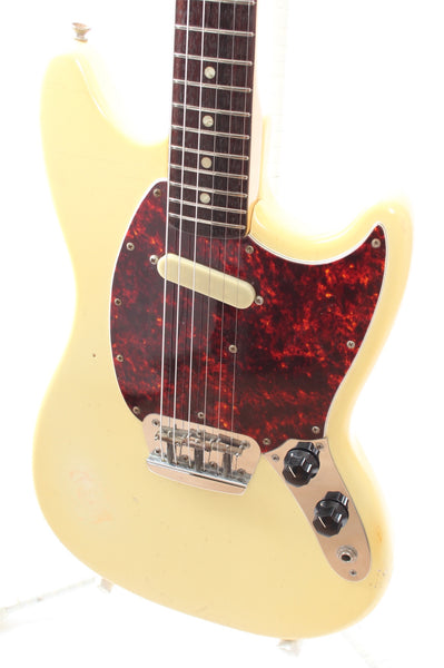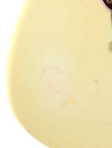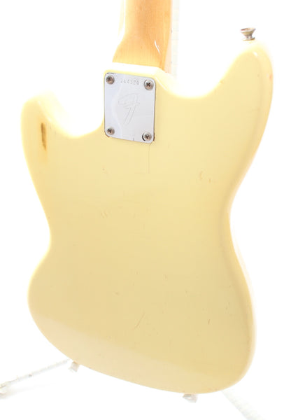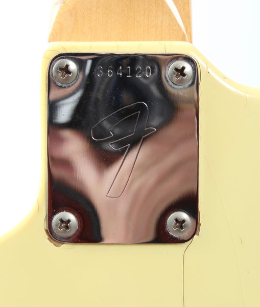 1972 Fender Musicmaster white. Made in USA, serial number 364120. This guitar is 100% original. April '72 neck date, '72 pickup code and the pots date to the 5th and 12th week of '72. Shows some yellowing and wheater checking overall and signs of a sticker shadow on the top. The wear on the neck is smooth to the touch and the neck shines with a beefy profile. Very comfortable playing and excellent sounding guitar. Excellent frets, freshly setup. Comes with a hardshell case. Weighs 2.9kg.