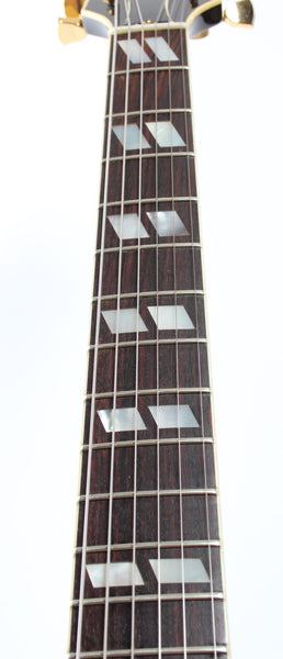 1994 Gibson ES-350T, vintage sunburst. Made in USA, serial number 94037933. This guitar is mostly original, with the exception of a few upgrades such as a sturdier bridge base, bone nut, CTS pots, vintage Bumblebee tone caps and a set of Lindy Fralin Pure PAF pickups. The f-hole label is missing. Rare limited edition model with a 25.5" scale length. Shows some wear, most notably one big scratch on the back. Excellent frets. Comes with a Gibson J-200 hardshell case, which is a bit deeper and corrected with some extra padding. Weighs only 3.35kg!