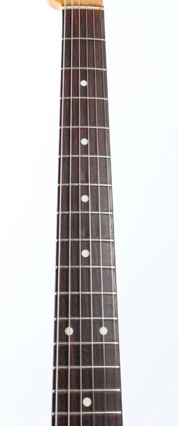 Ca. 1997 Fender Custom Telecaster '62 Reissue, sunburst. Crafted in Japan, serial number A001242. This guitar is all original, except for the neck pickup height screws (plugged holes in neck pickup route for optimal screw grip) and the bridge pickup height springs. Factory installed Fender USA Texas Special pickups. Shows light wear overall, freshly setup with 10-46 strings. Gorgeous three-tone sunburst finish. Weighs 3.75kg.