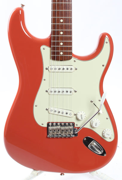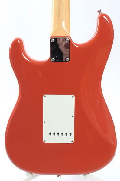 2022 Fender Stratocaster Traditional II 60s, fiesta red. Made in Japan, serial number JD22003752. This guitar is 100% original and comes with its original Fender gigbag and leaflet with matching serial number. It's in near mint condition with the protective plastic still on the pickguard and pickups. Nice bigger neck profile. Weighs 3.45kg.