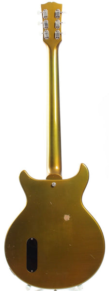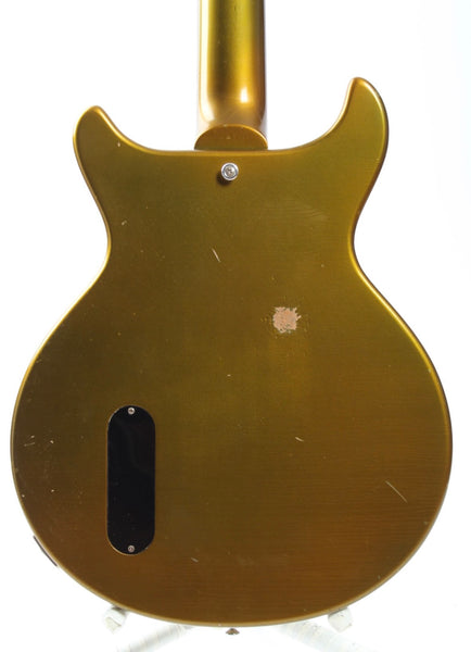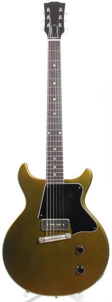 2026 Custom Les Paul Junior DC Special, all gold. Made in Japan. This is an ultra high quality, custom made take on a Gibson Les Paul Junior mixed with some Les Paul Special features (fretboard binding, pickguard, soapbar pickup). Round 50s neck profile, all korina wood (one-piece neck!) and all high grade Gotoh hardware, Gotoh SB Classic bridge P-90, CTS pots, Sprague Orange Drop tone cap and a very thin and realistically aged nitro finish. Comes with a gigbag. Weighs only 3.1kg.