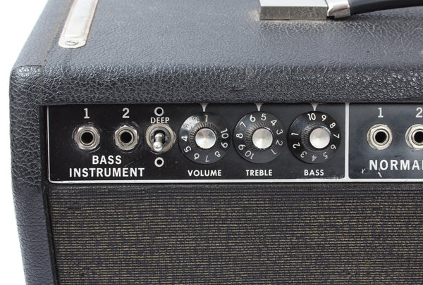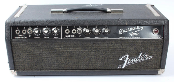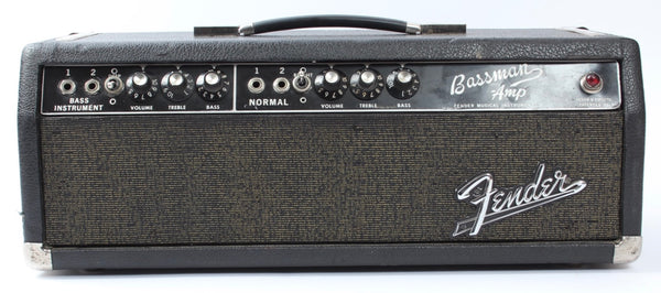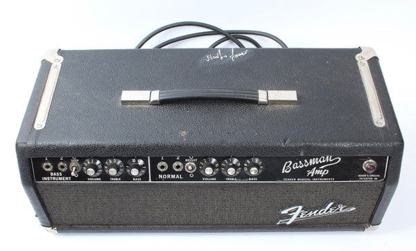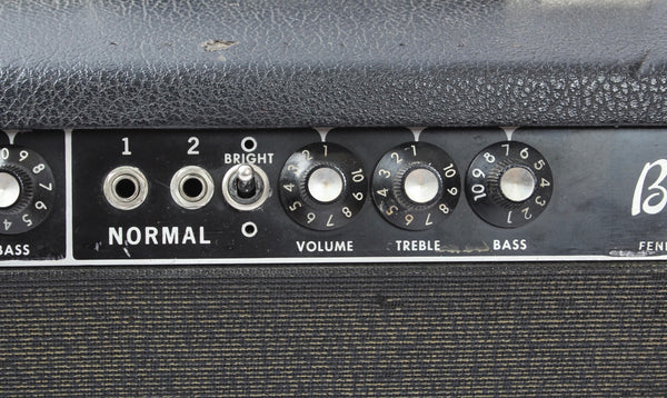 1966 Fender Bassman, blackface. Made in USA, serial number A18860. This amp has mostly cosmetic mods (grill cloth, logo position, back plate, screws, bright switches etc). Original transformers, export model, AB165 circuit. Last serviced in March 2025, works and sounds great.