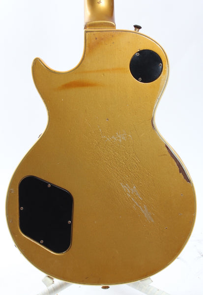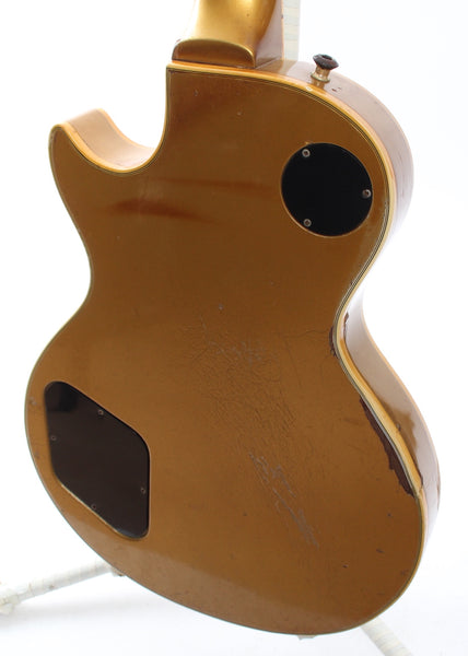 80520082, Reg. No. 8. This guitar is mostly original, except for the knobs, pickup rings, both tone pots and caps (50s wiring). The pickup covers were once removed and are now back on. Ultra rare Kalamazoo made custom color Les Paul Custom with the equally rare Register Number plaque. The color has yellowed into a gorgeous gold. The guitar shows a lot of wear and had a small portion each on the back and top of the body repaired. It had a pro refret and plays like a dream. You'll be hard pressed to find a cooler Les Paul Custom. Comes with a hardshell case. Weighs 4.75kg.