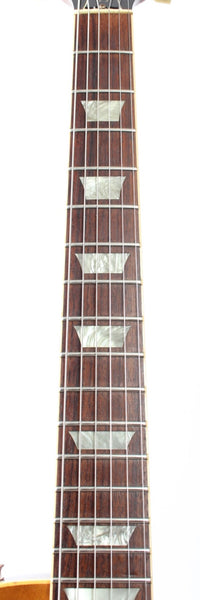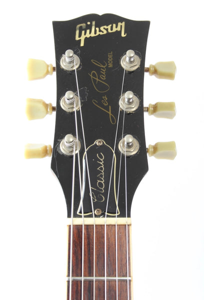 1992 Gibson Les Paul Classic, honey burst. Made in USA, serial number 24336. This guitar is mostly original, except for the tuners, strap buttons. The cavities are shielded and the electronics were redone with CTS 500K pots, Sprague Orange Drop tone caps and 50s wiring. The guitar shows a lot of wear, but it has perfect frets. Comes with the original brown tolex Gibson hardshell case. Weighs 4.3kg.