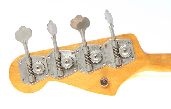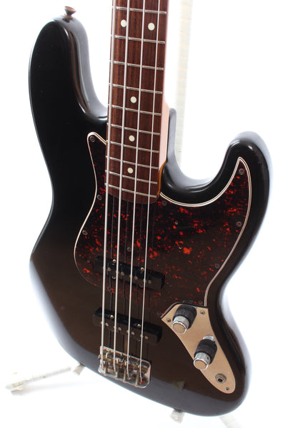 1994 Fender Jazz Bass American Vintage '62 Reissue, black. Made in USA, serial number V069338. This bass is all original, but the neck was replaced also in 1994. The logo, slab fretboard and headstock shape are actually nicer than on most AVRI basses. The bass shows some wear, but has excellent frets and is a very fine playing specimen. Comes with its original Fender tweed hardshell case. Weighs 4.4kg.