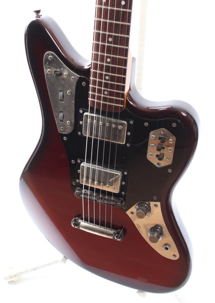 Ca. 2007 Fender Jaguar Special JGS HH gun metal red burstCrafted in Japan, serial number S046237. This guitar is 100% original. Very rare color for this model. Shows light wear and some hardware oxidation. Excellent frets, freshly setup with 11-49 strings. Weighs 3.85kg.