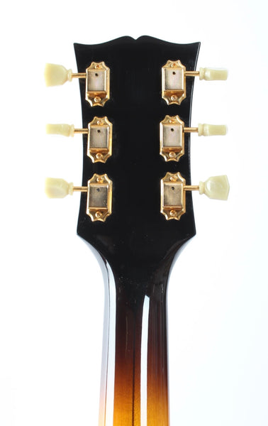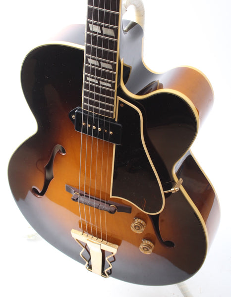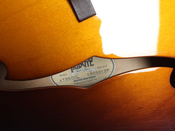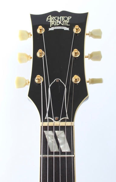 2013 Archtop Tribute AT350CL, sunburst. Made in Japan, serial number 130301OP. This guitar is 100% original and comes with its original hardshell case. It‘s a high end take on a Gibson ES-350 with the longer 25.5“ scale. It features an incredible sounding Grinning Dog P-90 with Alnico III magnets. Lovely dark rosewood fretboard. In excellent condition, freshly setup with 11-50 flats. Weighs 3.3kg.