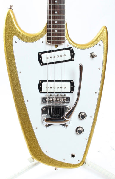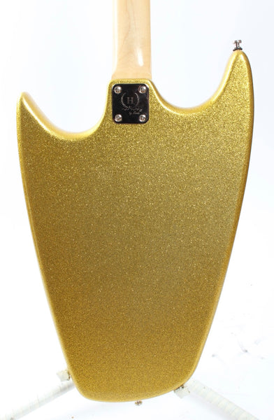 Ca. 2021 Hallmark by Shade Swept-Wing, gold sparkle. Serial number 3235. This guitar is 100% original and comes with its original Hallmark hardshell case. It's the vintage model, signed by Bob Shade on the back of the headstock. In excellent condition, freshly setup and ready to rock n roll. How cool is that design! Weighs 3.5kg.
