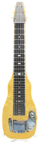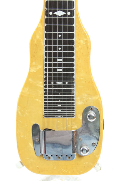 1953 Fender Champion lap steel. Made in USA, serial number 3074. This guitar is all original, except for the tuners and an added ground wire. The original blackguard Micawber Telecaster pickup sounds heavenly. Comes with its original, albeit black painted softshell case. Weighs 2.1kg.