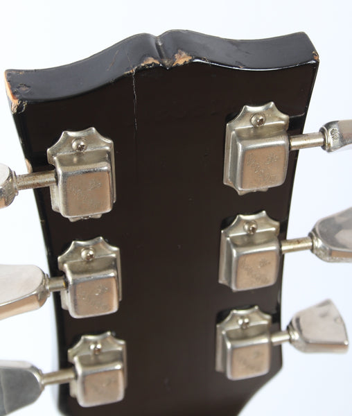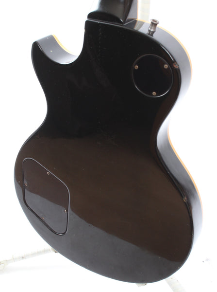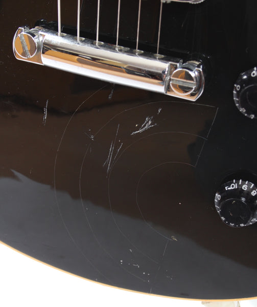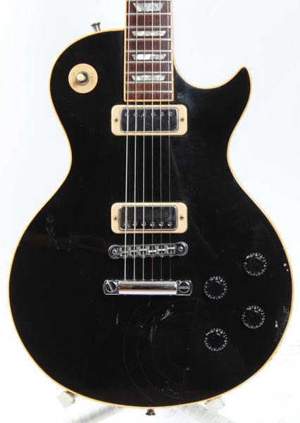 1980 Gibson Les Paul Deluxe, ebony. Made in USA, serial number 81420614. This guitar is mostly original, except for the knobs, strap buttons and truss rod cover. The pickguard is missing. The guitar was partially oversprayed at one point, a lot of wear from the removal can be seen. Freshly setup with 10-46 strings. Ebony is a rare color for the Deluxe Model with mini-humbuckers. Comes with its original Gibson protector hardshell case (one broken latch). Weighs 4.55kg.