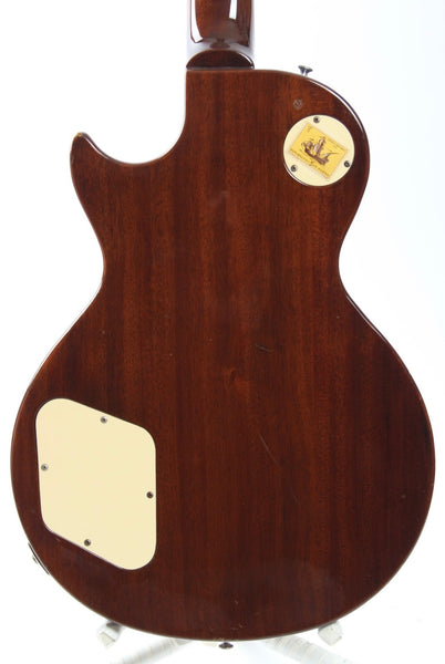 1989 Orville by Gibson Les Paul Standard, tobacco sunburst. Made in Japan, serial number G899244. This guitar is mostly original, except for the plastics, the input jack plate, upgraded electronics (500k CTS pots, 50s wiring) and a Gotoh bridge. Missing the pickguard, holes and an extra strap button hole filled. Features factory installed Gibson pickups, long neck tenon, thin cutaway binding, lacquer finish, solid two-piece maple top and a solid and super lightweight mahogany body. Excellent frets, freshly serviced with 10-46 strings. Weighs a hair below 3.7kg only!