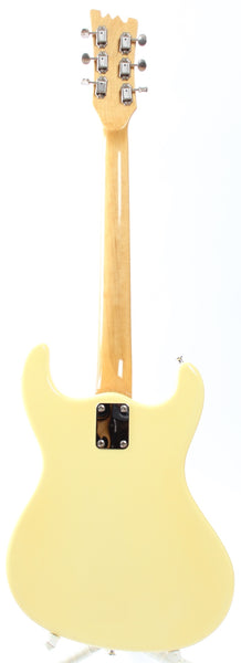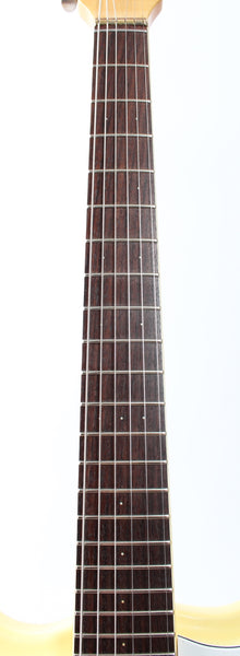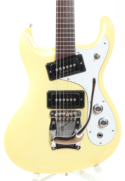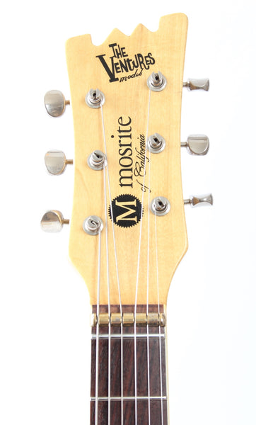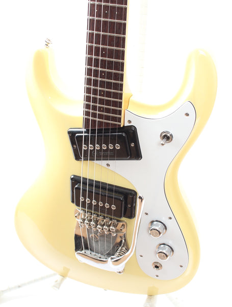 Ca. 1990s or 2000s Mosrite The Ventures MK1, vintage white. Made in Japan. This guitar is all original, except for CTS pots and cavity shielding. Ultra rare 22" scale guitar. Everything is slightly smaller and properly scaled down. Sound and playability just like the regular scale model, it is a particularly cool one. Weighs only 3.1kg.