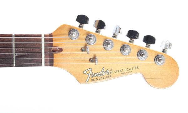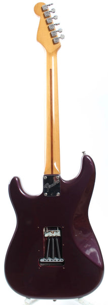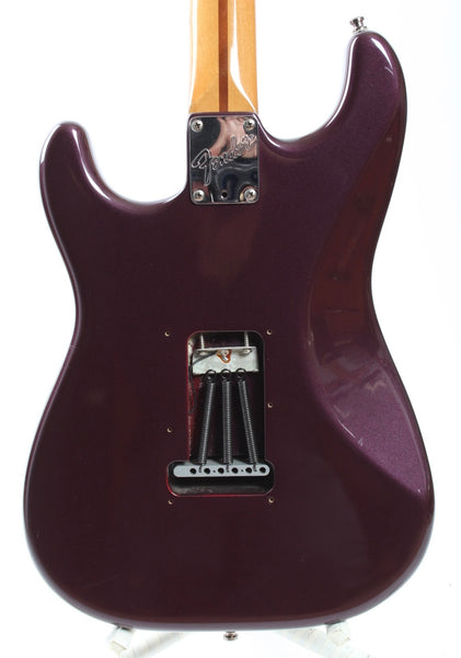 1991 Fender American Standard Stratocaster midnight purple. Made in USA, serial number N1041084. This guitar is mostly original, except for the pickguard and the Seymour Duncan TB-59 Trembucker. It's nice condition but shows some wear. Weighs 3.85kg.