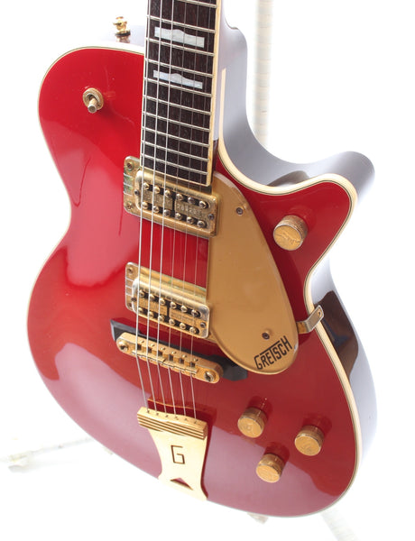 1999 Gretsch Jet 6131, firebird red. Made in Japan, serial number 9912131-465. This guitar is 100% original, except for the strap buttons and input jack. It shows some wear, mostly on the body, but it has excellent frets. Comes with the original Gretsch hardshell case. Weighs only 3.7kg.