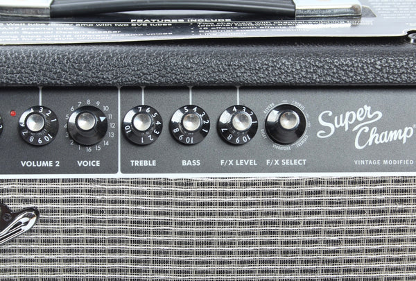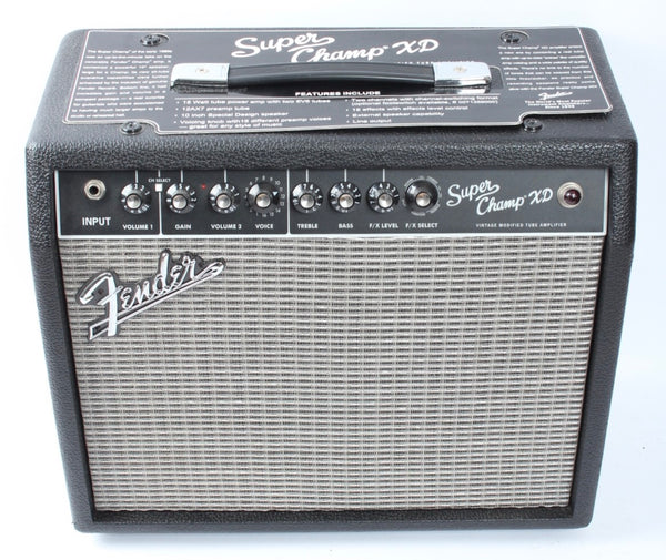 Ca. 2010 Fender Super Champ XD, blackface. Made in China, serial number CKWI10002655. This amp is all original and in excellent condition. Neat modelling amp with tubes.