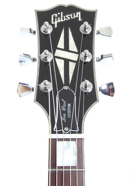 2011 Gibson Les Paul Classic Custom, ebony. Made in USA, serial number 134611350. This guitar is all original and comes with its original Gibson hardshell case, manual and pre-pack checklist with matching serial number. It had the tiniest heel crack that professionally repaired and touched up with proper nitro lacquer. Some binding on the headstock was also touched up (purely cosmetic). A way cool and fairly rare mix between a Les Paul Standard / Classic and a Custom. It shows some wear, but has perfect frets and gorgeous weather checking allover. Weighs 4.55kg.
