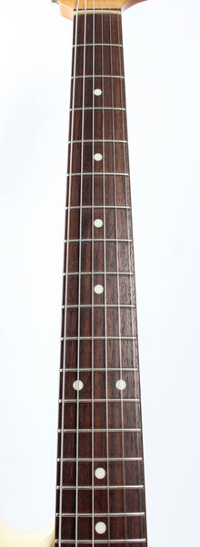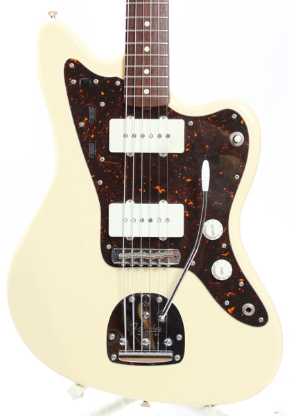 2015 Fender Jazzmaster '66 Reissue, vintage white. Made in Japan, serial number JD15003622. This guitar is all original, except for CTS pots and a Sprague Orange Drop tone cap in the lead circuit and the tremolo arm. Shows light wear only and it's rather light at only 3.6kg.