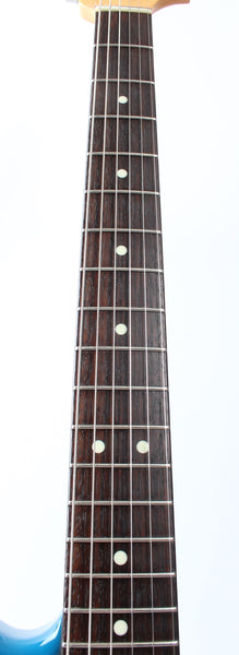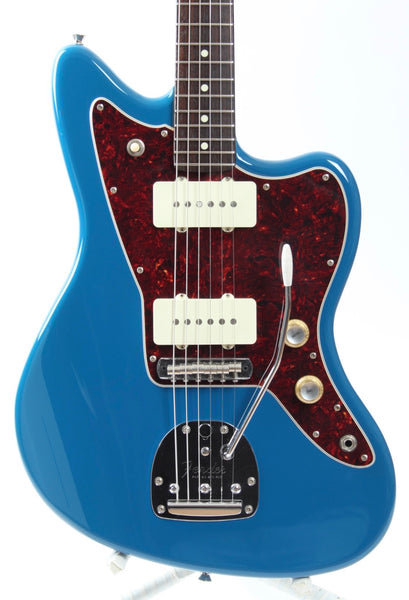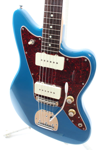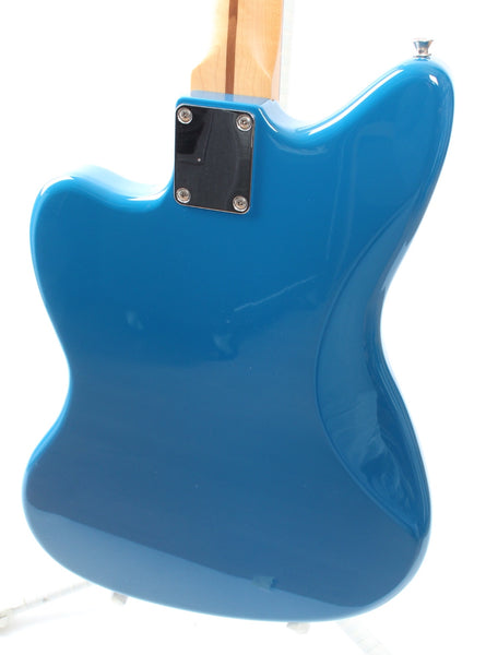 2022 Fender Jazzmaster Hybrid II, forest blue. Made in Japan, serial number JD22000163. This guitar is all original, except for the knobs and tremolo arm. Nice modern, yet not invasive approach with a 9.5" fretboard radius, vintage looking locking tuners, 22 frets, simpler electronics and Fender Mustang bridge saddles. Rare color! Weighs 3.8kg.